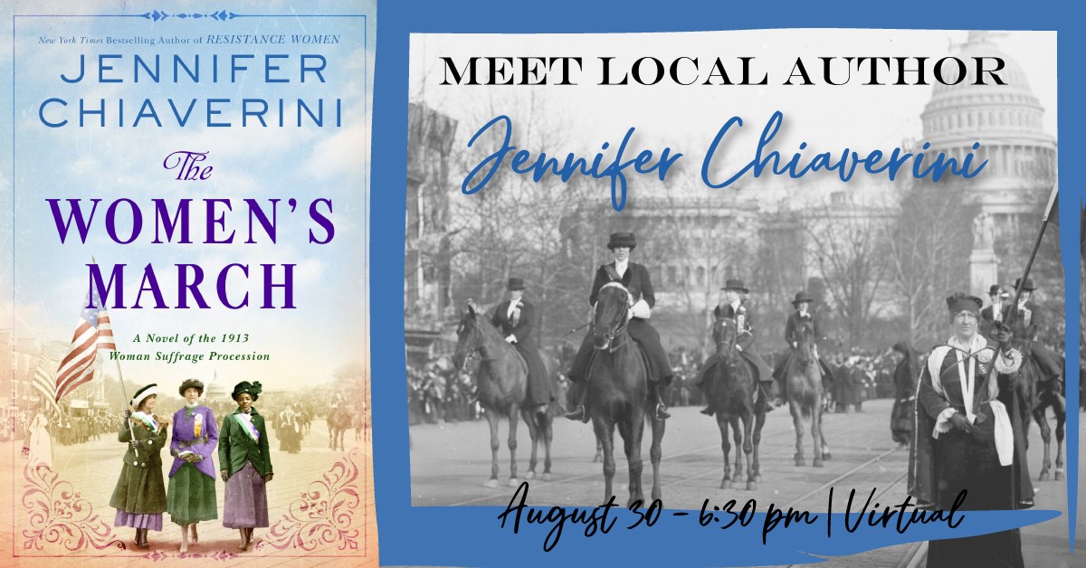 Jennifer Chiaverini will discuss her new book, The Women’s March: A Novel of the 1913 Woman’s Suffrage Procession. This book is an enthralling historical novel of the women’s suffrage movement inspired by three courageous women who bravely risked their lives and liberty in the fight to win the vote.