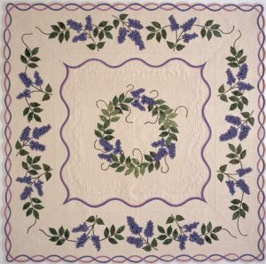 In The Quilter’s Legacy, Eleanor makes this quilt as a twentieth anniversary gift for her husband, Frederick, as an expression of all that she loved best about the natural beauty of the Bergstrom family estate. The pattern for “Elms and Lilacs” appears in my second pattern book, Return to Elm Creek (C&T Publishing, 2004).