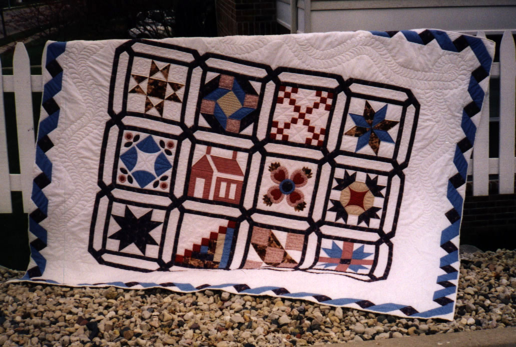 sarahThe sampler quilt Sylvia teaches Sarah to make in The Quilter’s Apprentice. The pattern for “Sarah’s Sampler” appears in my first pattern book, Elm Creek Quilts: Quilt Projects Inspired by the Elm Creek Quilts Novels (C&T Publishing, 2002).