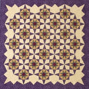 When Gretchen Hartley arrives for her job interview at Elm Creek Quilt Camp in Circle of Quilters, she is astonished to discover a camper working on one of her own original designs, a Dogtooth Violet quilt identical to her own except for the fabric selections, Unraveling the mystery of how her quilt came to be duplicated forces Gretchen to face the unsettling possibility that her unscrupulous business partner has been deceiving her. The pattern for “Violets for Gretchen” appears in my third pattern book, More Elm Creek Quilts (C&T Publishing, 2008).